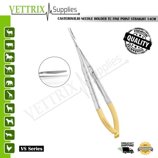 Vettrix Supplies provides world-class surgical instruments trusted by professionals worldwide. The Castroviejo Needle Holder TC Fine Pointed 14cm Straight combines precision, strength, and ergonomic design, making it an essential choice for advanced microsurgery.