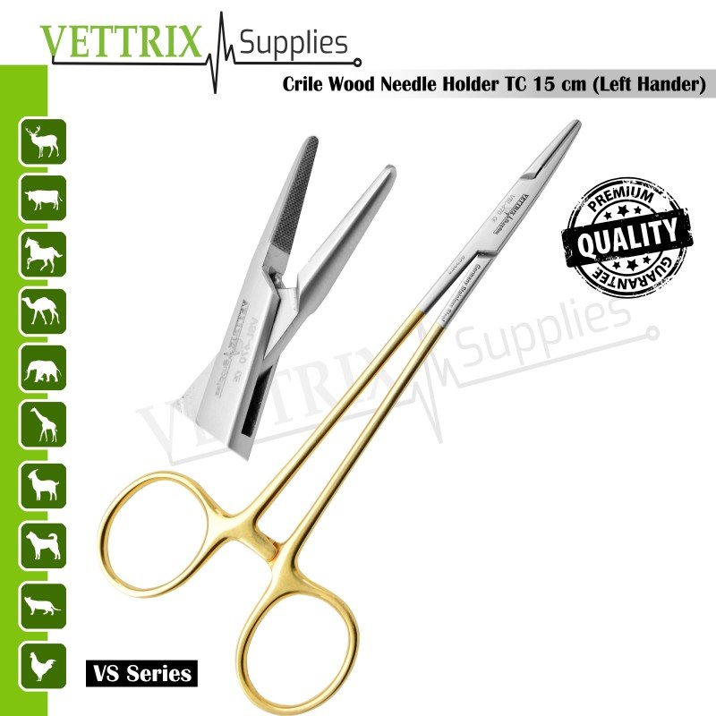Vettrix Supplies provides professional-grade surgical instruments trusted by specialists worldwide. The Crile-Wood Needle Holder TC 15cm Lefthander ensures precision, durability, and ergonomic comfort, making it perfect for delicate suturing by left-handed surgeons.