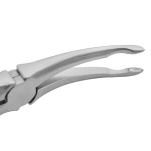 The Extracting Forceps Upper Roots Fig. 44 are designed from premium medical-grade stainless steel for the precise extraction of upper root fragments. With finely contoured beaks tailored to fit the anatomy of upper roots, these forceps ensure a secure grip and controlled removal while minimizing tissue trauma.