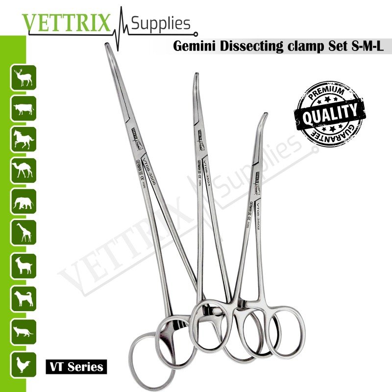 Vettrix Supplies delivers professional-grade surgical instruments trusted worldwide. The Gemini Dissecting Clamps Set S-M-L combines precision, durability, and ergonomic design, providing reliable performance in every procedure.