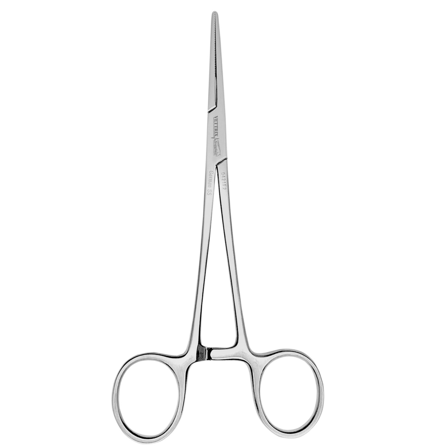 The Kelly-Rankin Forceps 16cm Straight are designed for clamping medium-sized blood vessels and manipulating tissues during surgical and veterinary procedures. Featuring serrated straight jaws with a ratchet locking mechanism, they provide a firm grip and dependable hemostasis without causing unnecessary trauma.