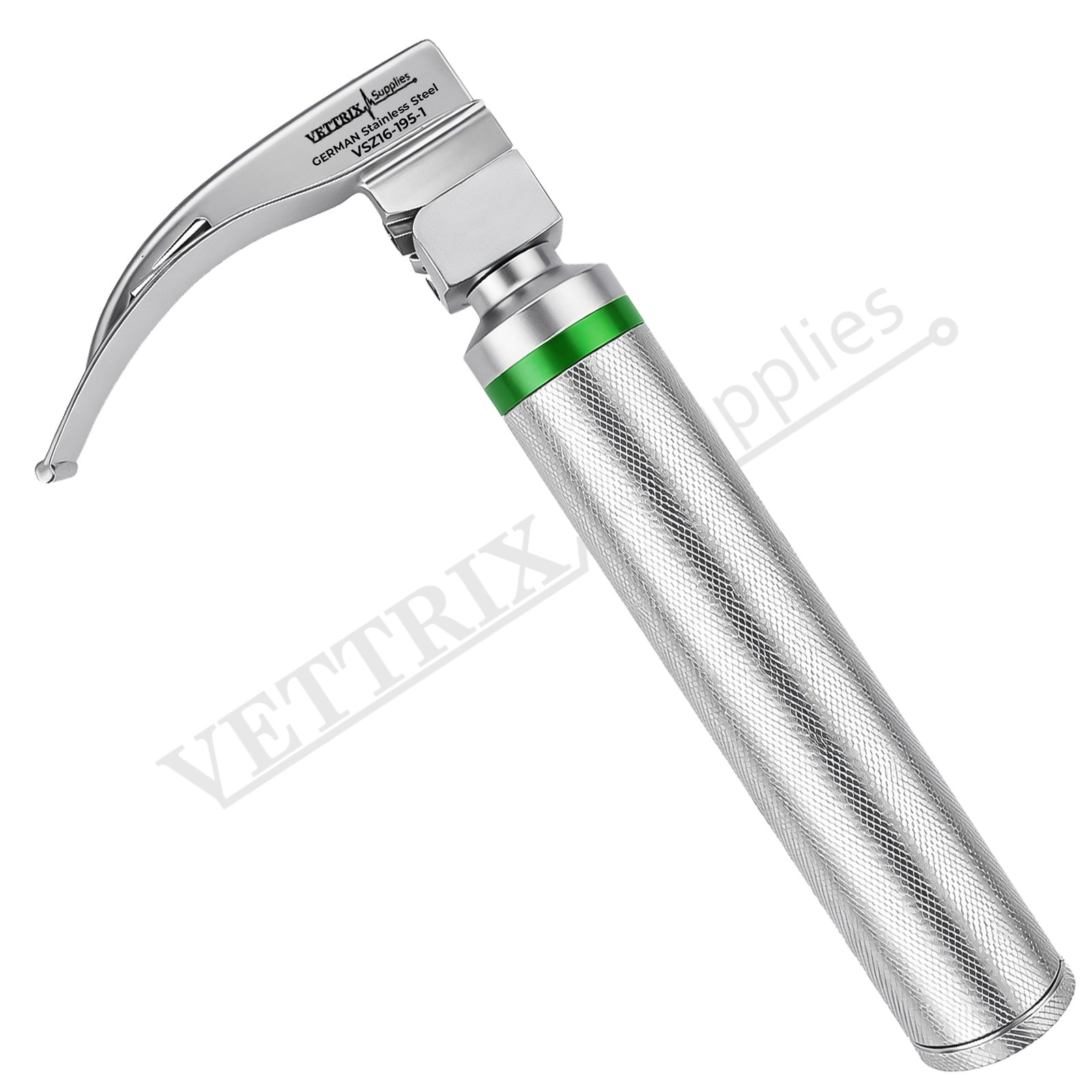 The Laryngoscope Set With 5 Blades is a precision veterinary medical instrument set designed for airway examination and intubation procedures. The set includes five interchangeable blades of varying sizes, allowing veterinary professionals to select the appropriate blade for different animal sizes and clinical requirements.