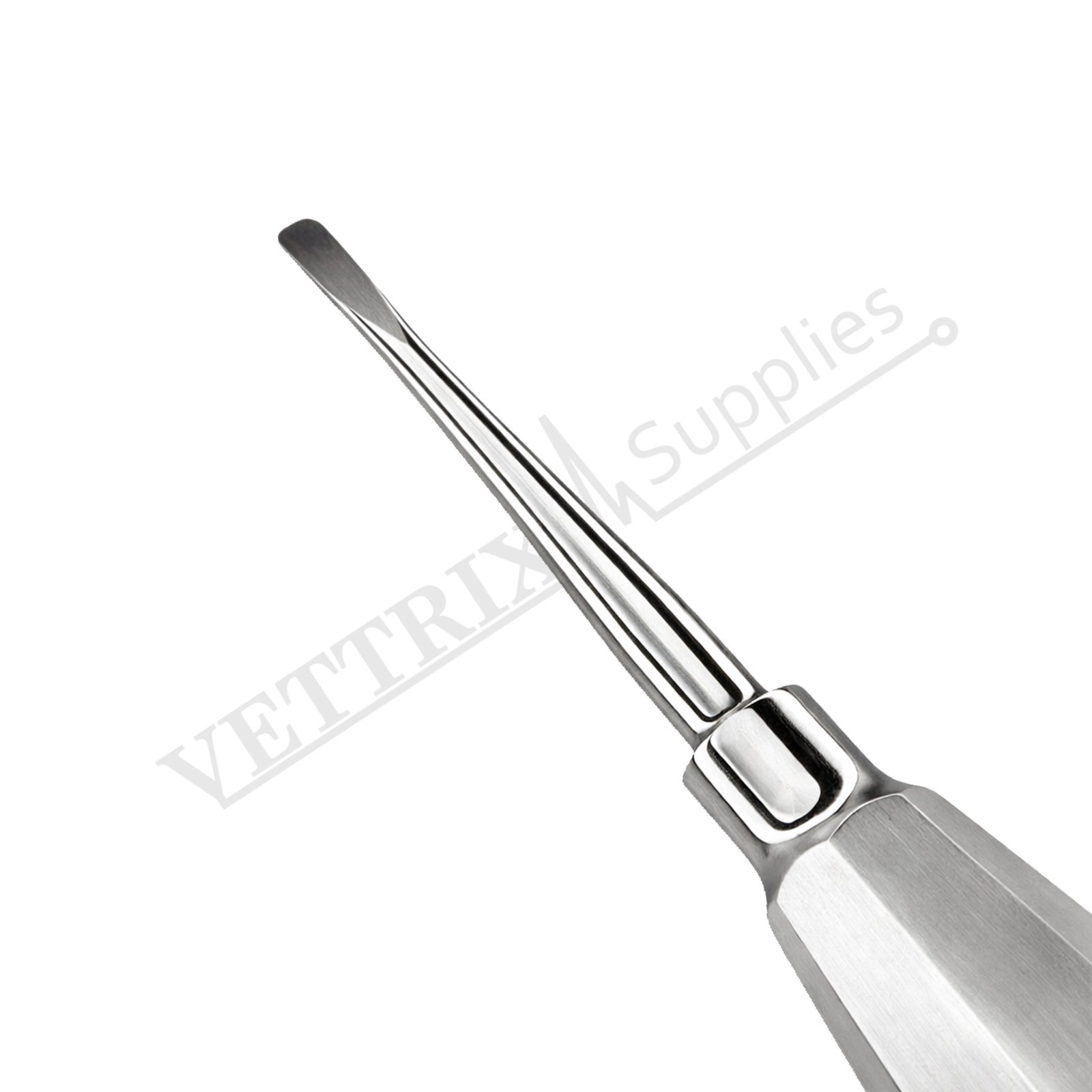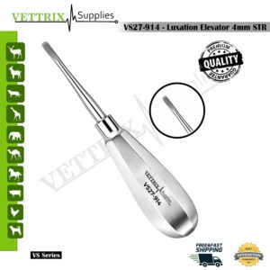The Luxation Elevator 4 mm STR is a precision veterinary dental instrument designed for controlled luxation and elevation of teeth during oral surgical procedures. The 4 mm straight (STR) tip provides strong leverage and accurate access while minimizing trauma to surrounding tissues.