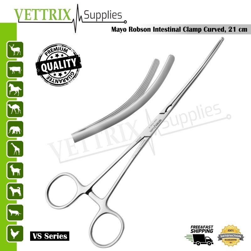 Vettrix Supplies delivers professional-grade surgical instruments trusted worldwide. The Mayo Robson Intestinal Clamp Curved 21cm combines precision, durability, and ergonomic design, ensuring reliable performance in every surgical procedure.