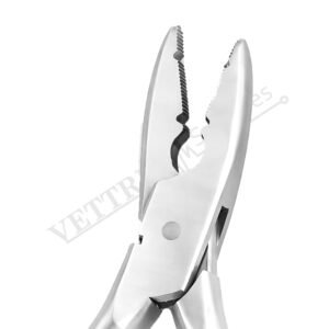The Noke Plier is a precision veterinary instrument designed for controlled gripping, bending, and manipulation during clinical and surgical procedures. Its robust jaw design provides a firm hold, allowing accurate handling of materials with minimal effort.