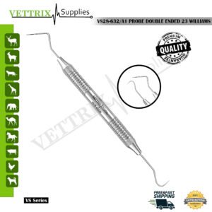 Manufactured from premium surgical-grade stainless steel, the Probe Double Ended 23 Williams ensures durability, corrosion resistance, and consistent performance through repeated sterilization cycles. The clearly marked Williams scale allows precise measurement, while the ergonomic handle provides a secure grip and excellent control during veterinary dental procedures.