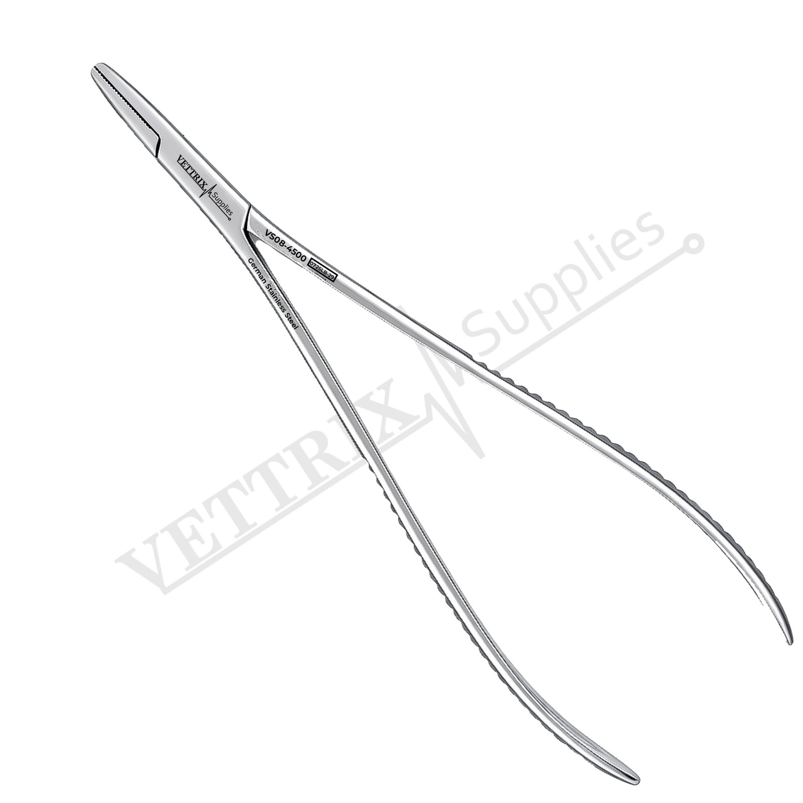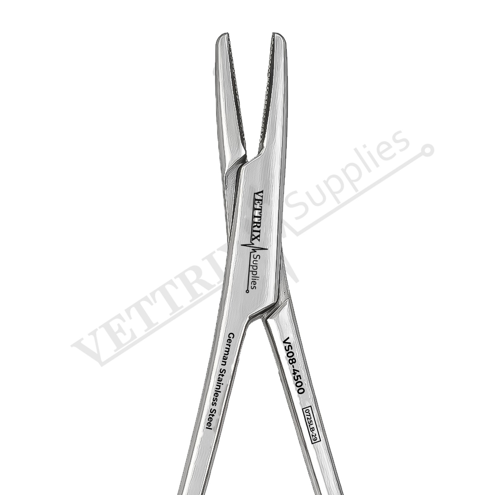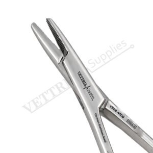 Manufactured from premium surgical-grade stainless steel, this needle holder offers excellent durability, corrosion resistance, and consistent performance through repeated sterilization cycles. The ergonomic finger-ring handle allows precise control and comfortable handling in veterinary surgical environments.