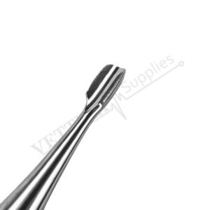 Manufactured from premium surgical-grade stainless steel, the Winged Elevator Serrated 5 mm ensures durability, corrosion resistance, and dependable performance through repeated sterilization cycles. The standard ergonomic handle provides a secure grip and precise control during veterinary dental procedures.