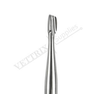 The Winged Elevator Serrated 8 mm is a precision veterinary dental instrument designed for controlled tooth elevation and loosening during extraction procedures. The 8 mm serrated working tip provides strong leverage and accurate positioning, allowing veterinarians to elevate teeth efficiently while minimizing trauma to surrounding tissues.